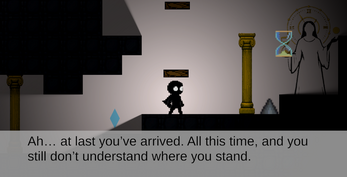 In this short platformer, you find yourself trapped in a place ruled by the goddess of time. She doesn’t just watch you: she hinders you, confuses you, puts you to the test. Seconds stretch, moments shatter, the world speeds up or slows down without warning. Your real enemy isn’t the level. It’s time itself.