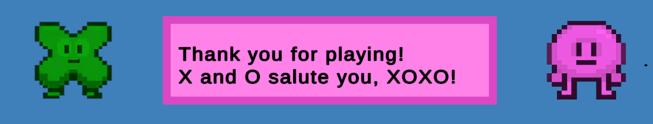 Guide both characters to the two central XO tiles at the same time in order to win.